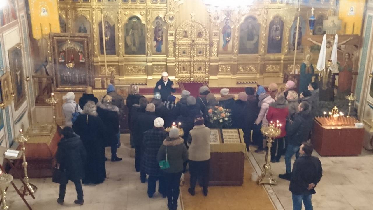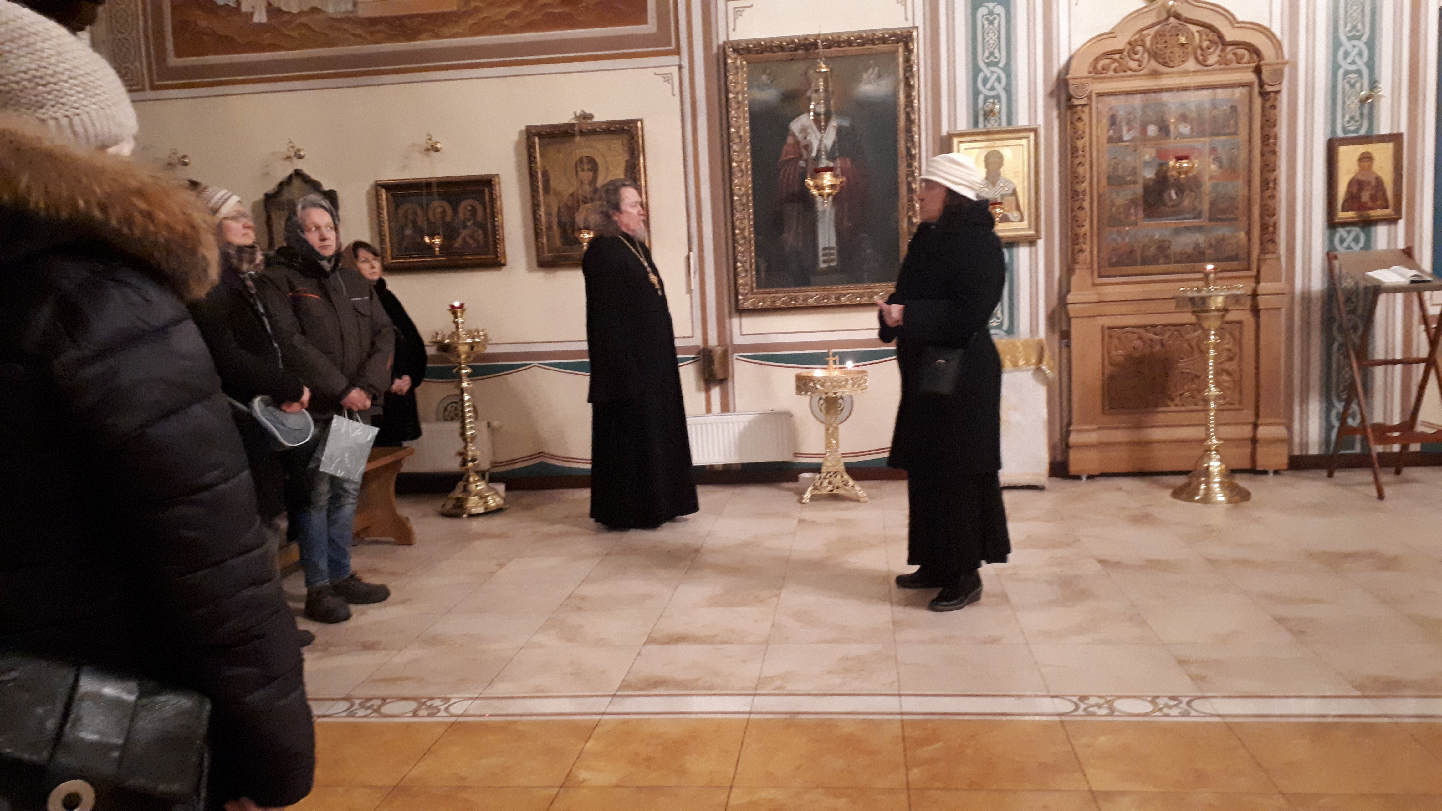 В пятницу, 14 декабря, в церкви Всех Русских Святых состоялась лекция-экскурсия, посвященная иконам храма. Искусствовед Маргарита Артамонова поведала собравшимся историю храма, создания иконостаса и настенных росписей. Лектор рассказала об иконах храма- истории их написания и приобретения храмом. Также пояснила значение символики икон. Перед началом лекции к слушателям с приветственным словом обратился настоятель храма прот.Владимир Артамонов. Подобные экскурсии планируются также в других храмах города.