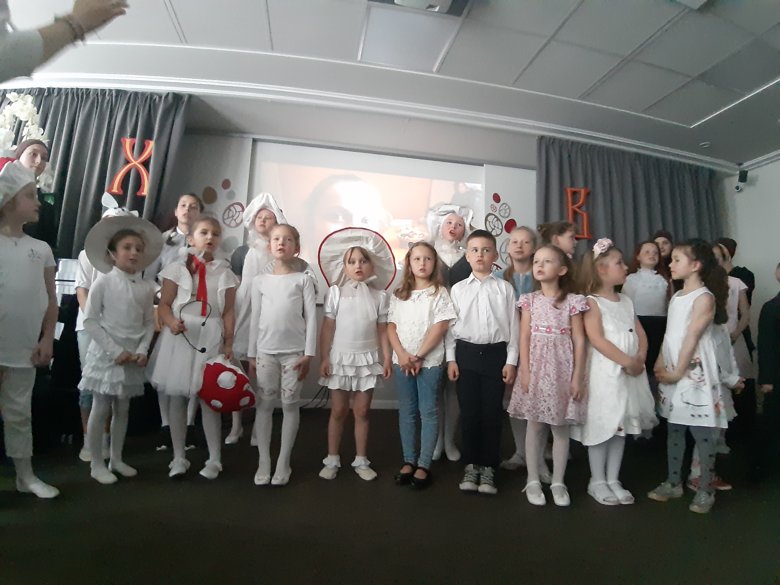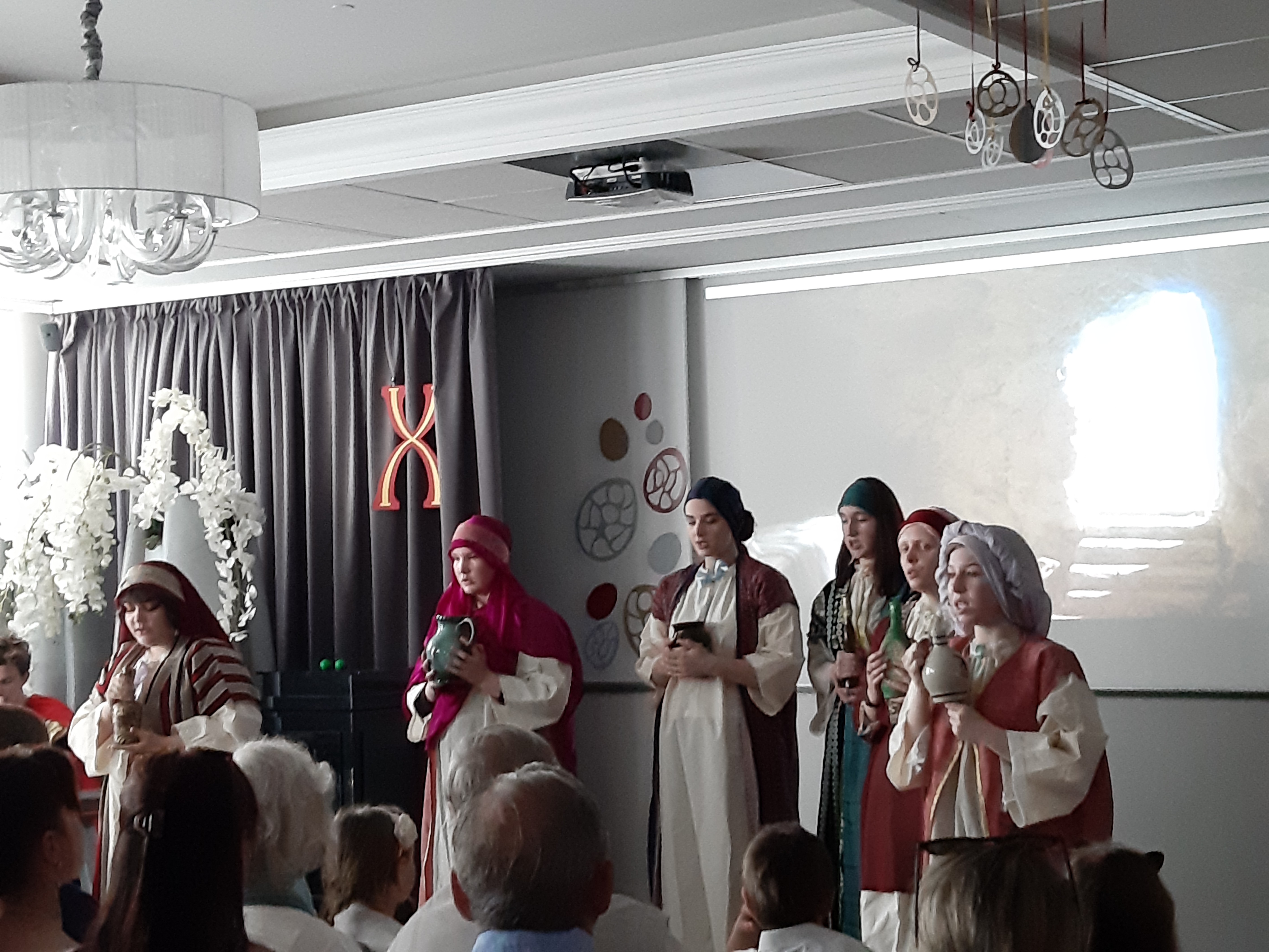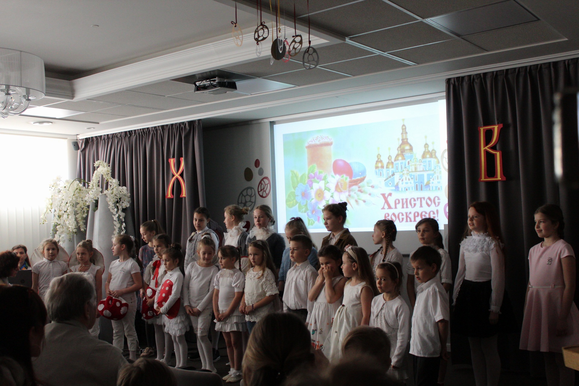 Конференц- зал гостиницы « Арарат», любезно предоставленный хозяином Гарником был заполнен зрителями. Со сцены звучали Пасхальные стихи, песни и театрально- танцевальные постановки . Старшие ребята, участвовали в сценическом повествование «Воскресение» ,а младшие школьники, представили зрителям юмористический спектакль « Мухоморчик » После праздника, зрители аплодировали и высказывали слова благодарности.
