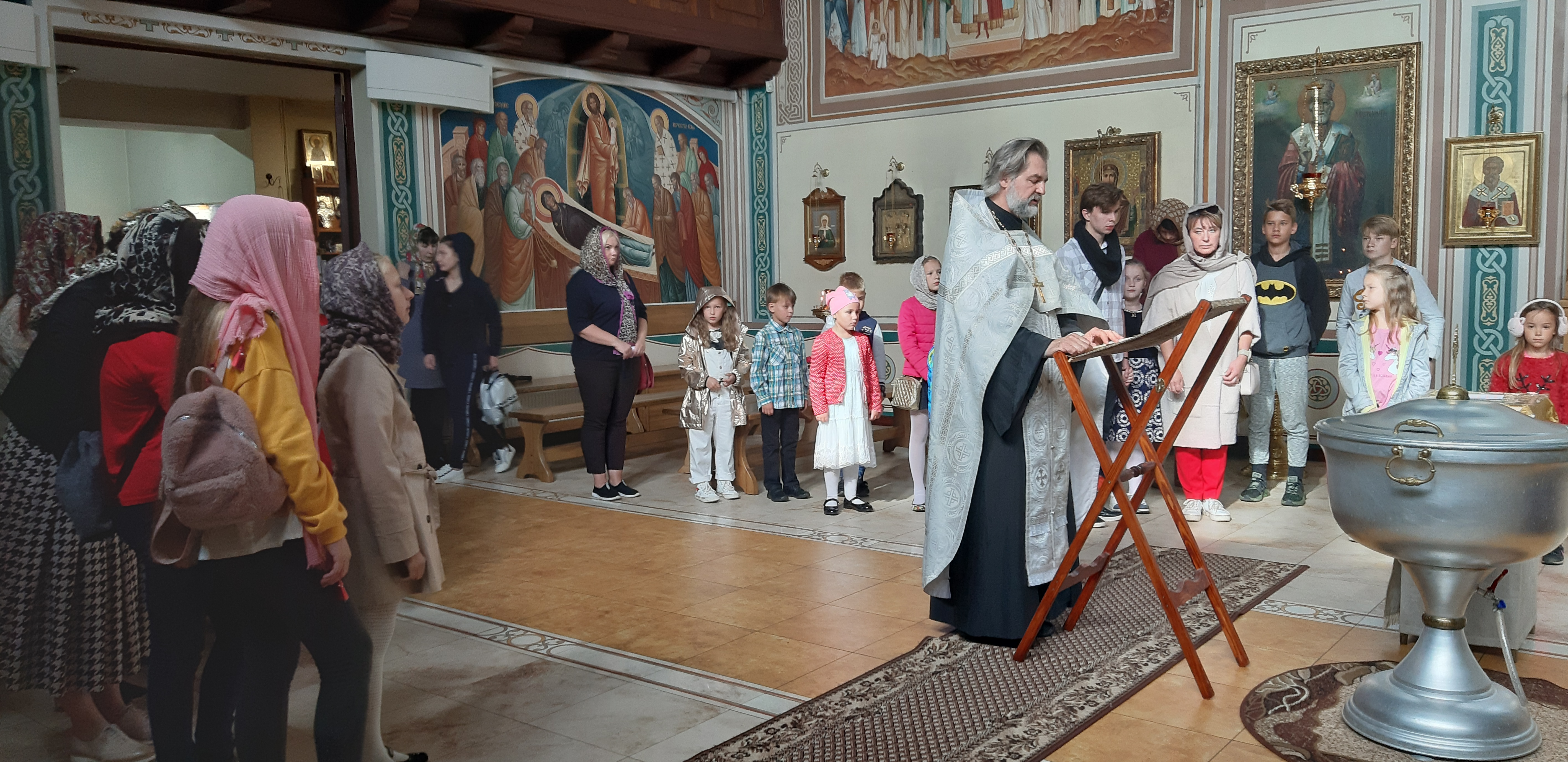 Все ученики и родители собрались в храме,где был отслужен молебен на начало Индикта,т.е.начало церковного Нового года,который отслужил иерей Георгий Ананьев.