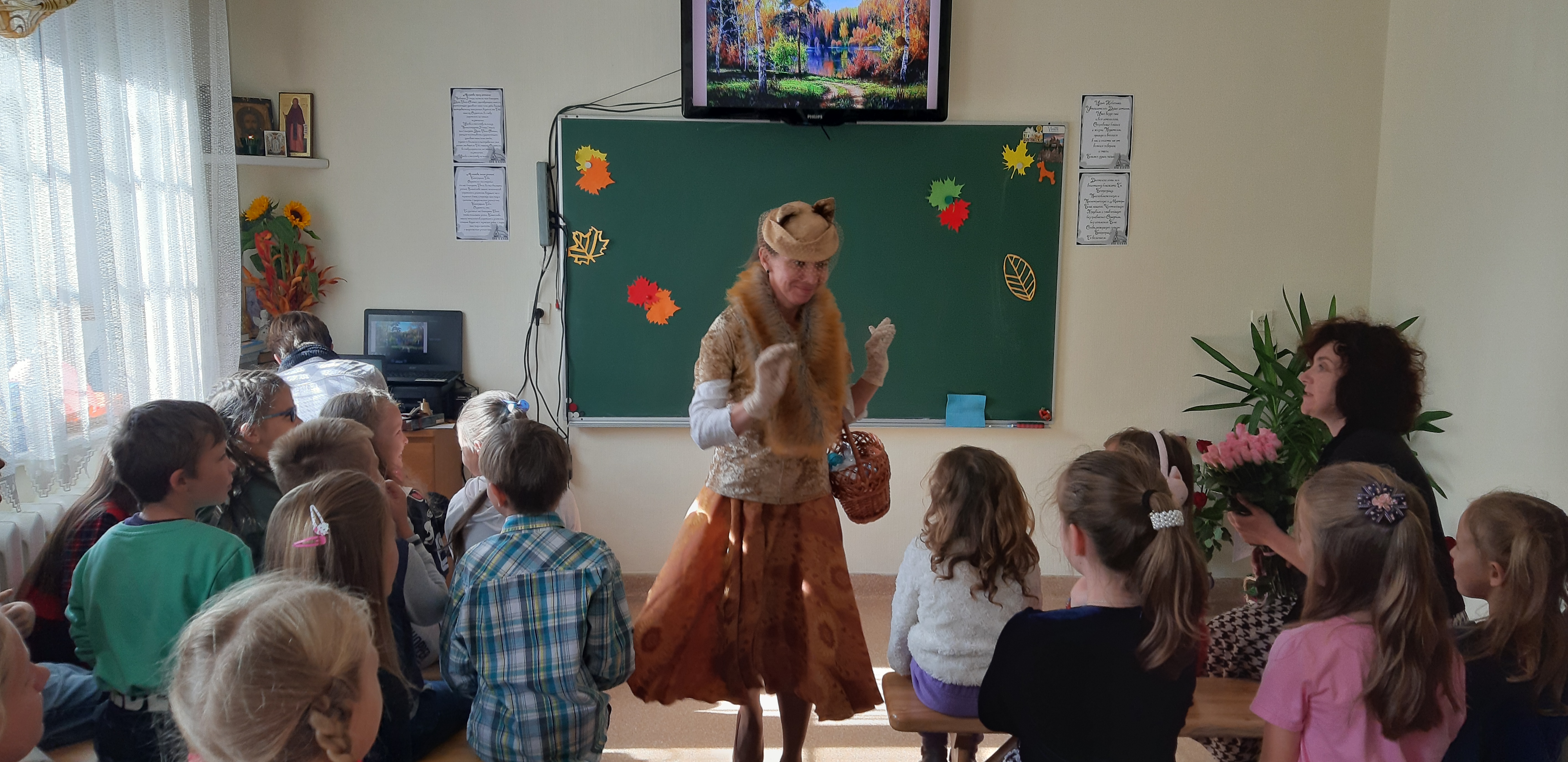 А гостья-рыжая лисичка,устроила состязания,в которых приняли участие ученики разного возраста!