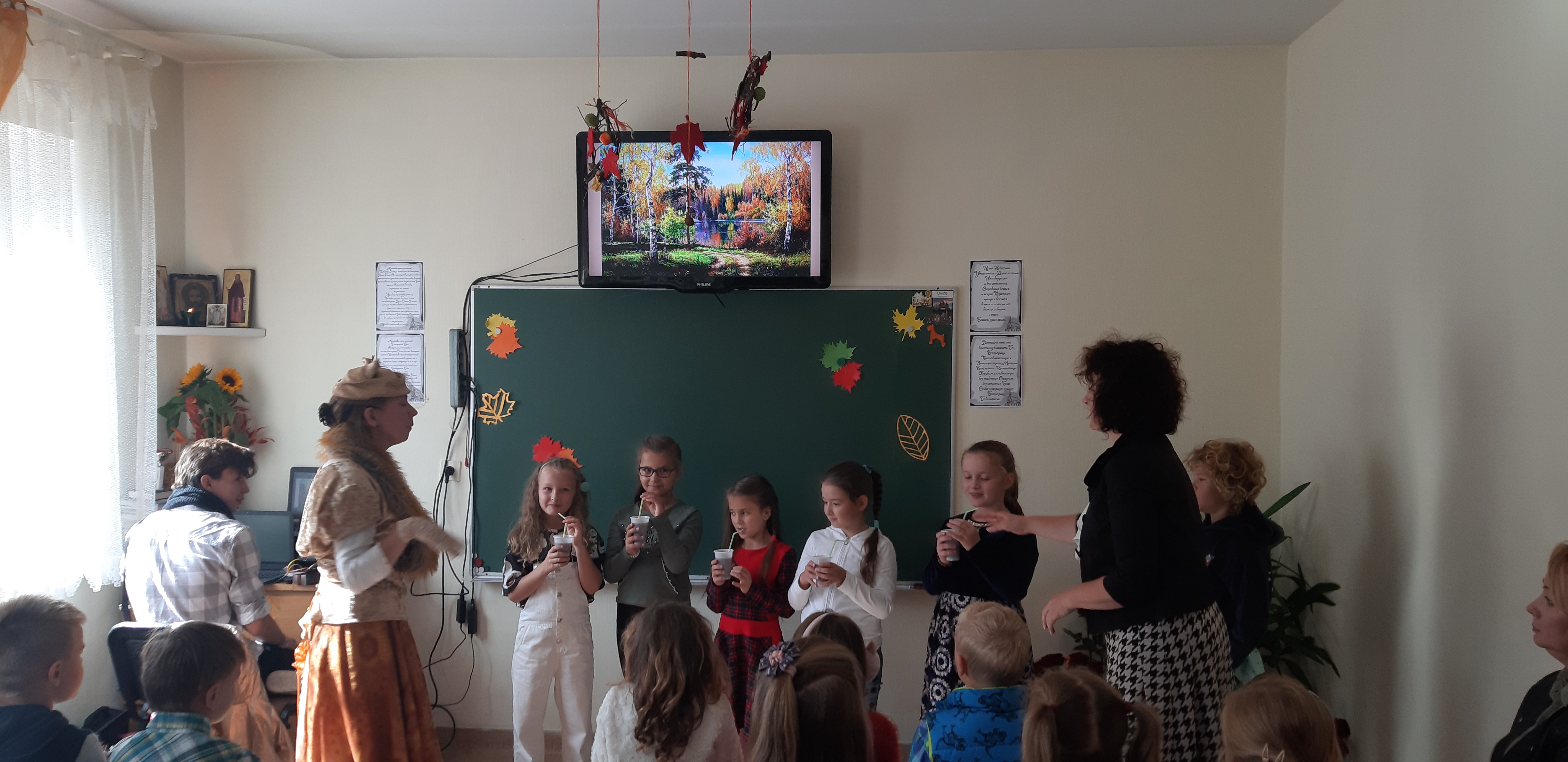 Далее праздник продолжился в стенах воскресной школы,где ребята читали стихи,вспомнили о летних денечках,прозвучали поздравления и пожелания от преподавателей!